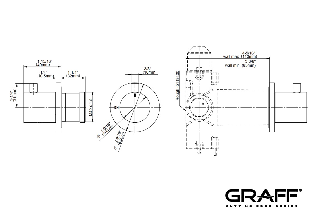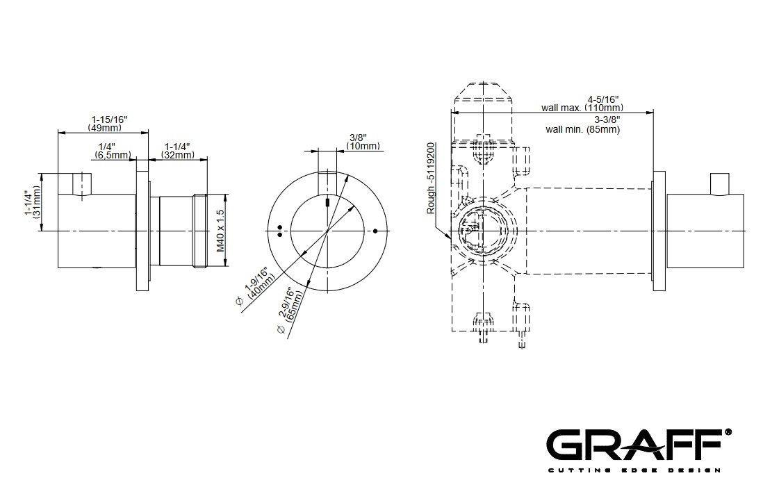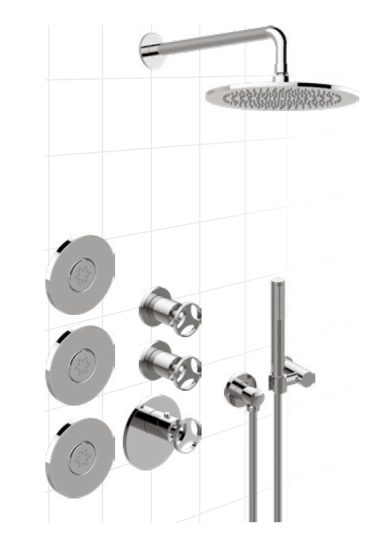 Graff M-Series Zestaw natryskowy termostatyczny podtynkowy z deszczownicą ścienną Ø 252 mm i zestawem prysznicowym Chrom HARLEY