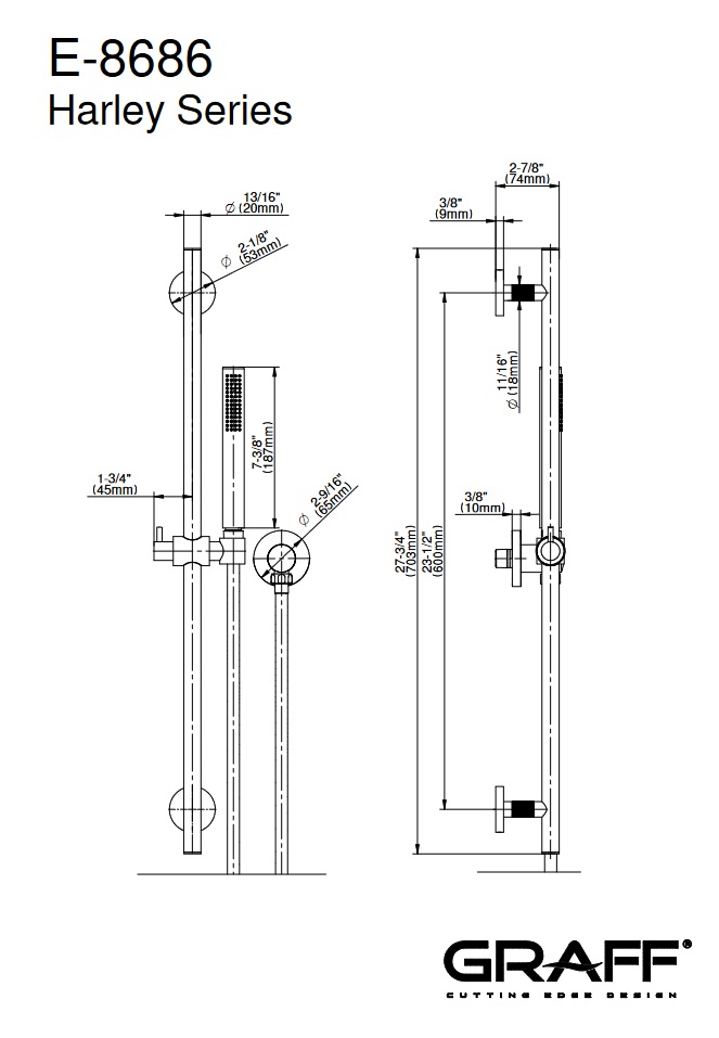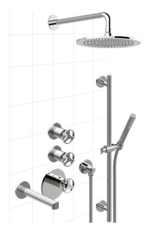 Graff M-Series Zestaw wannowo-natryskowy termostatyczny podtynkowy z deszczownicą ścienną Ø 252 mm i zestawem prysznicowym na drążku Chrom HARLEY03