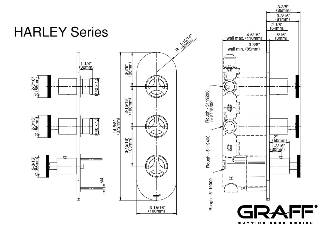 Graff M-Series Zestaw natryskowy termostatyczny podtynkowy z deszczownicą ścienną Ø 252 mm i zestawem prysznicowym Chrom HARLEY05