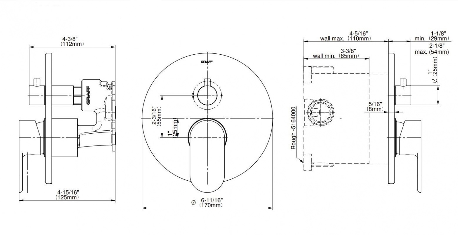 Graff Bateria natryskowa podtynkowa z przełącznikiem 2-drożnym - element zewnętrzny Chrom E-17030-LM45N-T