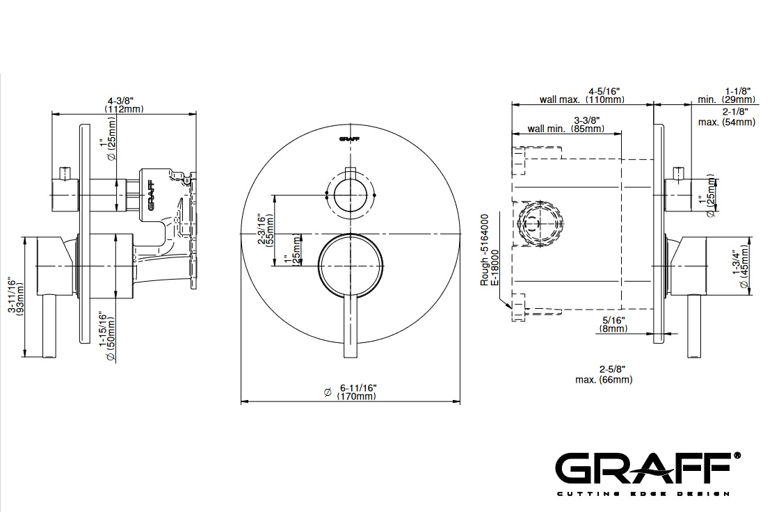 Graff Bateria natryskowa podtynkowa z przełącznikiem 2-drożnym - element zewnętrzny Chrom E-17030-LM57N-T