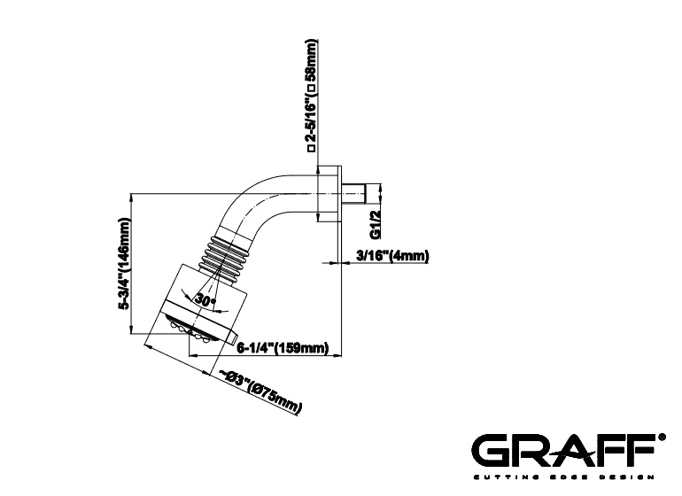 Graff Deszczownica Ø 75 mm 5- funkcyjna na ramieniu ściennym Chrom E-8330