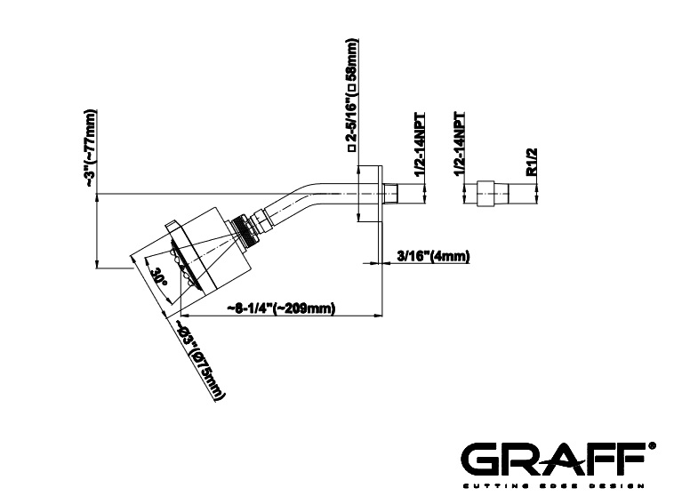 Graff Deszczownica Ø 75 mm 5-funkcyjna na ramieniu ściennym Chrom E-8332