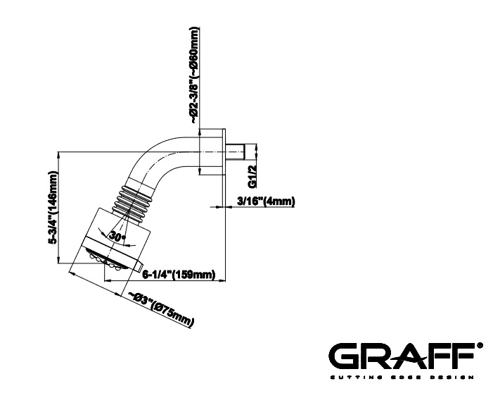 Graff Deszczownica Ø 75 mm 5-funkcyjna na ramieniu ściennym Chrom E-8334