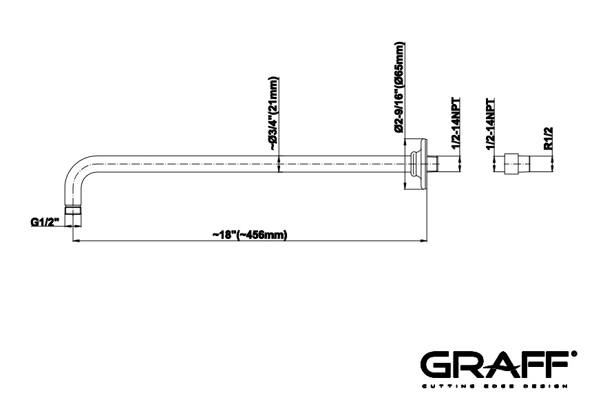 Graff Ramie ścienne deszczownicy 456 mm Chrom E-8501