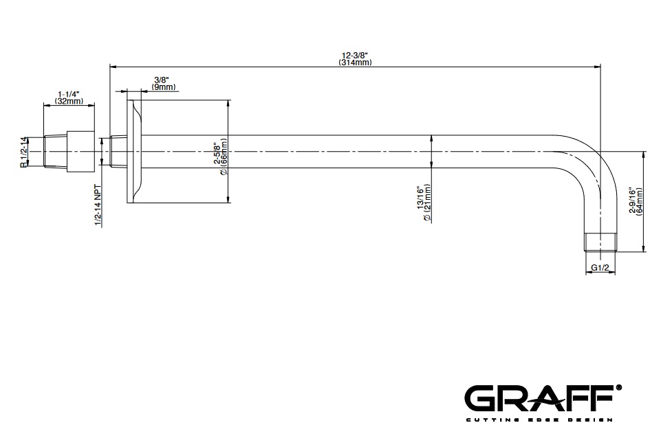 Graff Camden Ramie ścienne deszczownicy 296 mm Chrom E-8508