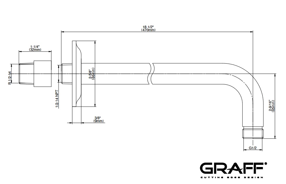 Graff Camden Ramie ścienne deszczownicy 452 mm Chrom E-8509