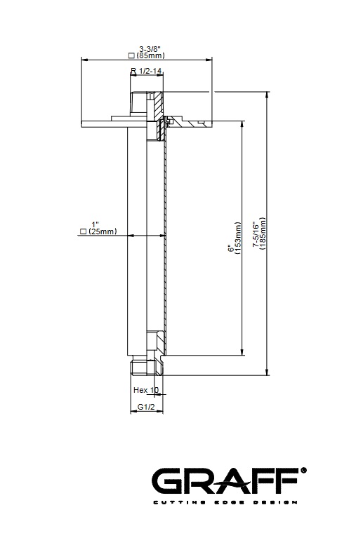 Graff Ramie sufitowe 166 mm do deszczownicy Chrom E-8539