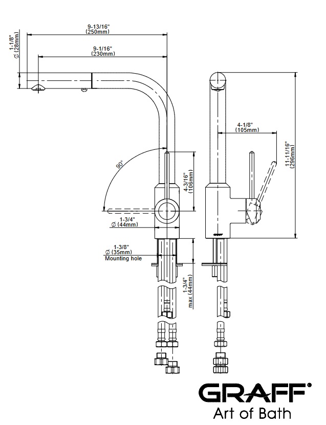 Graff ME Bateria kuchenna nablatowa z dwufunkcyjną głowicą natryskową/strumieniową Chrom E-4630-LM41K