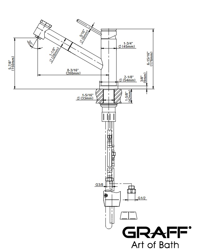 Graff ME Bateria kuchenna nablatowa z dwufunkcyjną głowicą natryskową/strumieniową Chrom E-4425-LM53