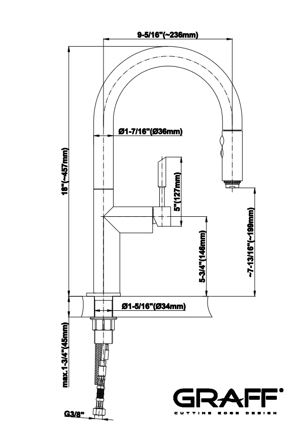 Graff Oscar Bateria kuchenna nablatowa z ruchomą wylewką i dwufunkcyjną głowicą Chrom E-4853