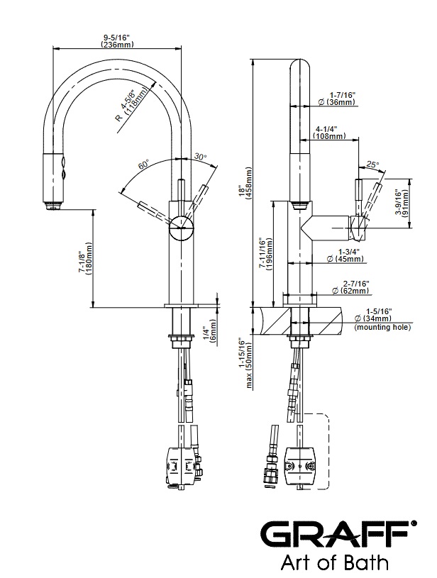 Graff Perfeque Bateria kuchenna nablatowa z ruchomą wylewką i dwufunkcyjną głowicą Chrom E-4612-LM3