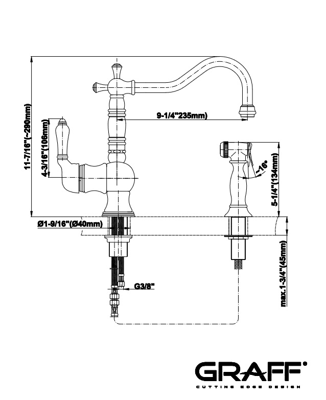 Graff Tuscany Bateria kuchenna jednootworowa z boczną słuchawką Chrom E-5237-LM7