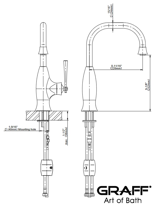 Wysokość wylewki: 232 mm