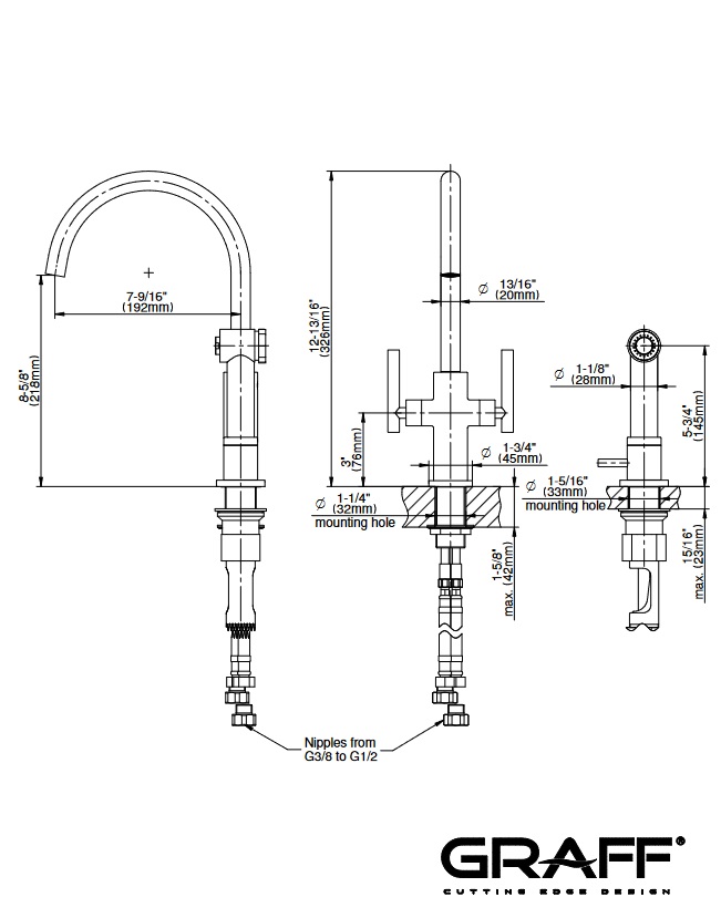 Graff Sospiro-Bar Bateria kuchenna nablatowa ze słuchawką Chrom E-5675-LM49K