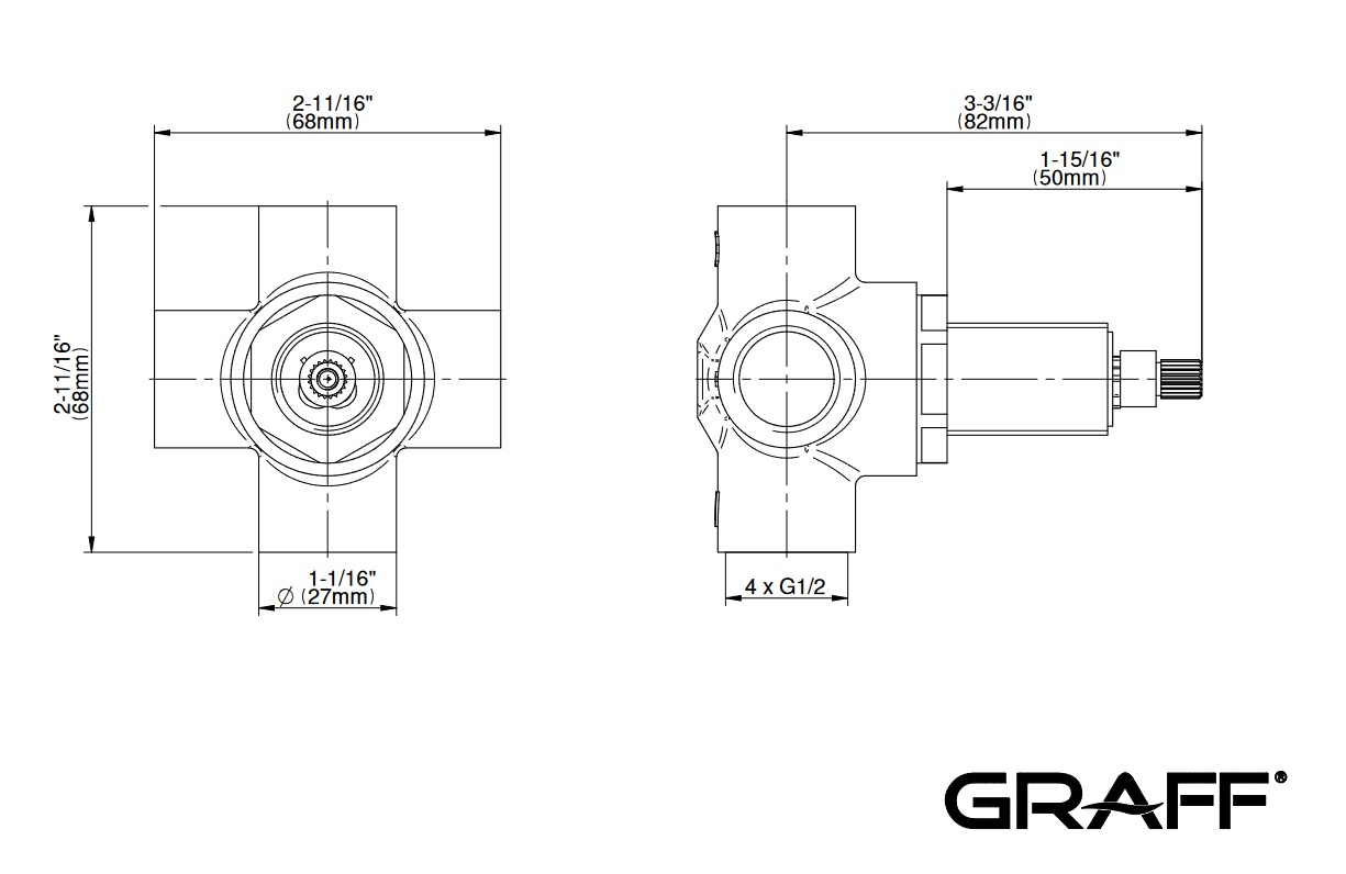 Graff Rozdzielacz 1/2"  2- lub 3-drożny - element podtynkowy E-8151