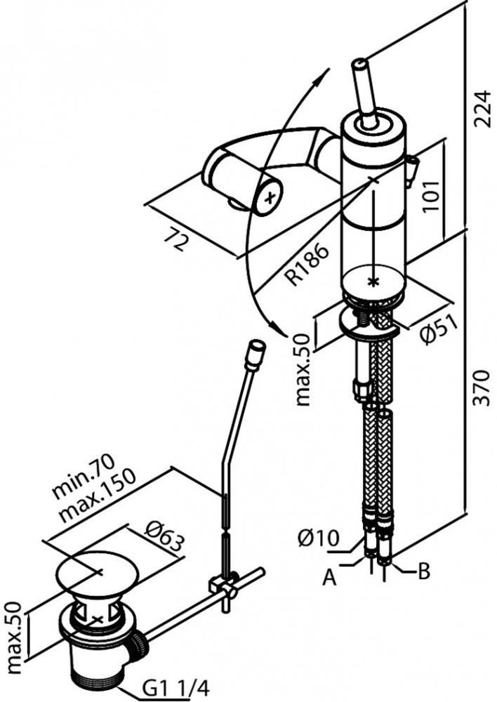 Damixa Arc Bateria umywalkowa chrom/czarny 2981874