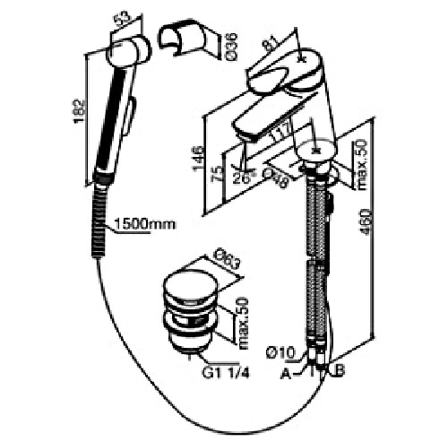 Damixa Clover Bateria umywalkowa z rączką natryskową chrom 60837.00