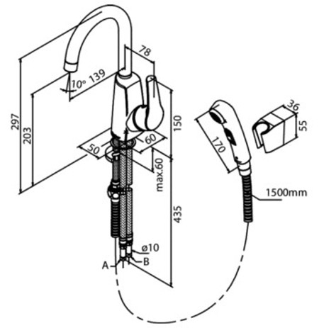 Damixa Rowan Bateria umywalkowa z rączką natryskową chrom 6763300