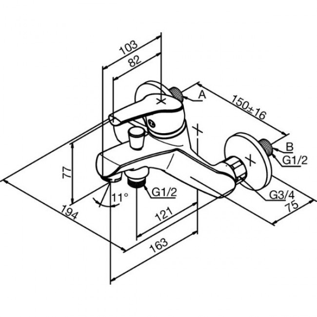 • Rozstaw podłączeniowy 150 mm