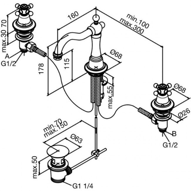 Damixa Tradition Bateria wannowa 3-otworowa chrom 3707800