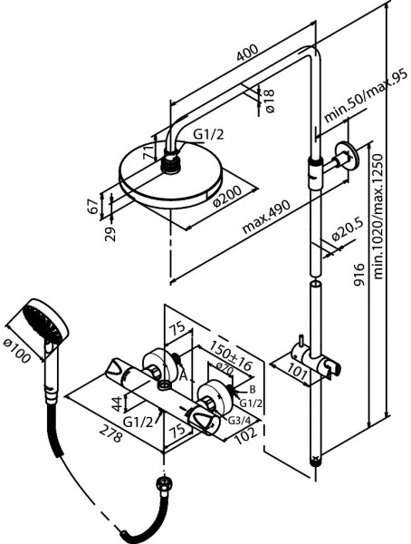 Damixa Dikara Zestaw natryskowy termostatyczny chrom 6091200