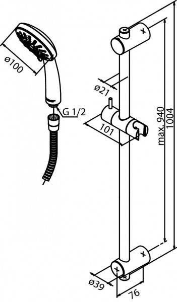 • Elastyczne mocowanie obu końców drążka prysznicowego