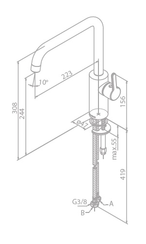 • Zasięg wylewki: 223 mm