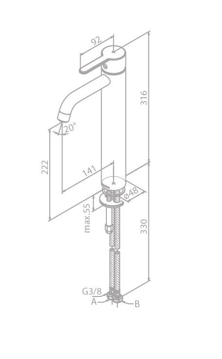 • Zasięg wylewki: 141 mm