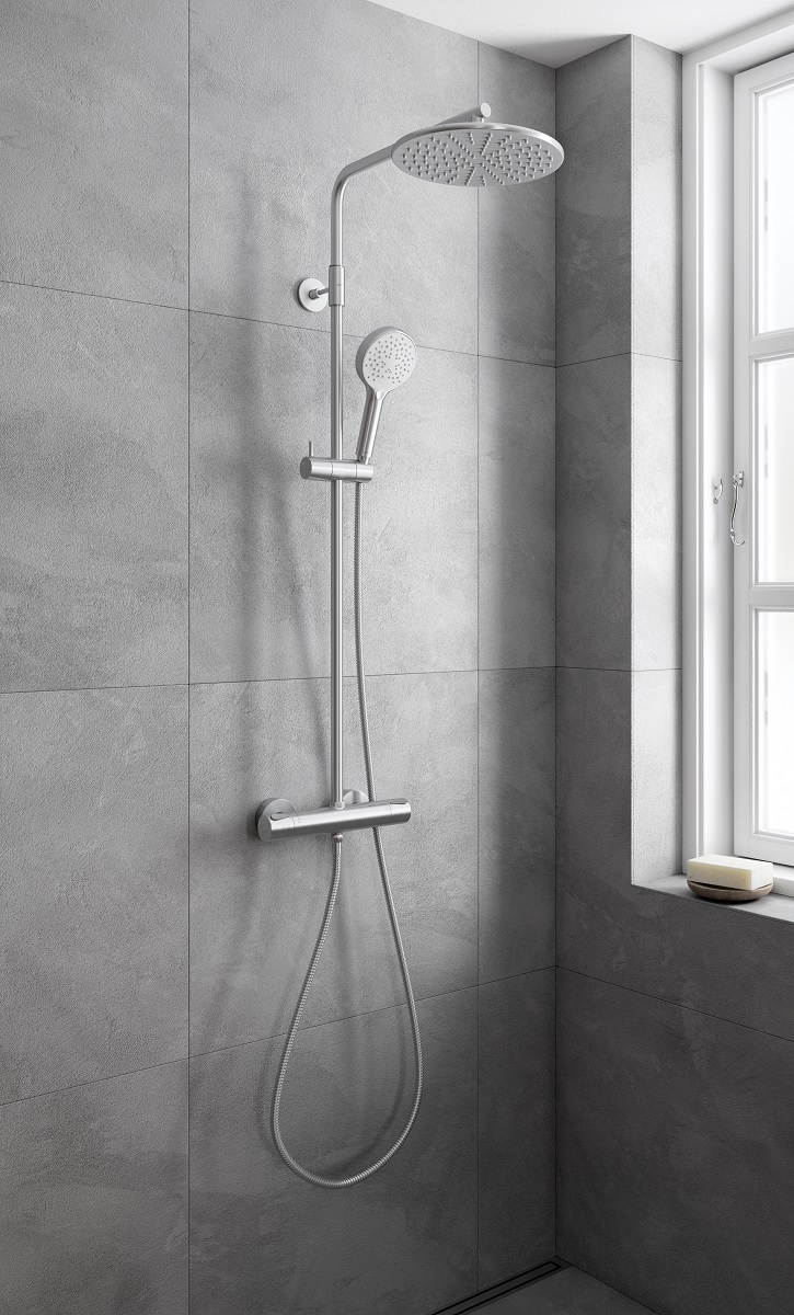 Damixa Silhouet Zestaw natryskowy z deszczownicą i słuchawką ścienny stal 57954.46