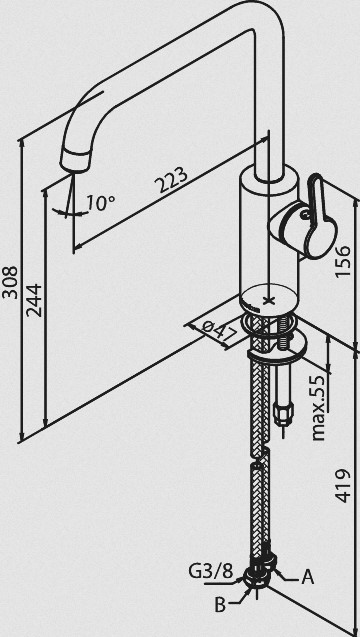 • Zasięg wylewki: 223 mm