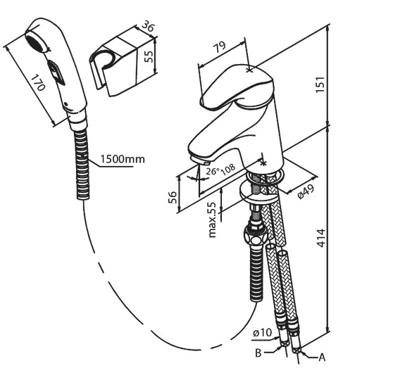 Wysięg wylewki: 108 mm