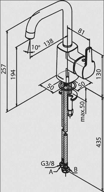 Wysięg wylewki: 138 mm