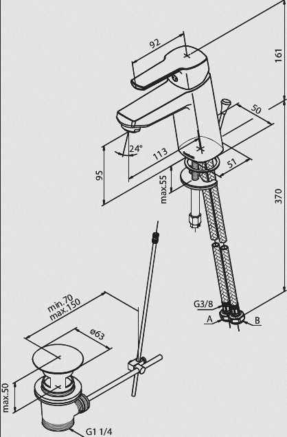 Wysięg wylewki: 113 mm