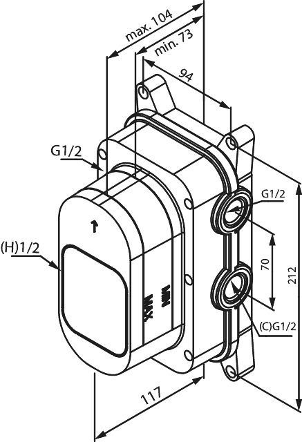 Głębokość zabudowy (min. 73mm - max. 104mm)