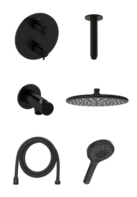 Damixa Silhouet Zestaw prysznicowy termostatyczny podtynkowy element zewnętrzny czarny mat 571246100