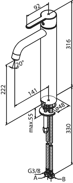 Damixa Silhouet Bateria umywalkowa jednootworowa wysoka szczotkowany grafit pvd 740135500