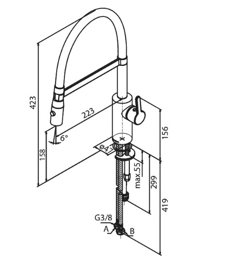 Damixa Silhouet Pro Bateria kuchenna jednootworowa z wylewką obrotową szczotkowany grafit pvd 741285500