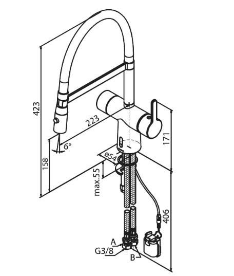 Wysokość wylewki: 15,8 cm