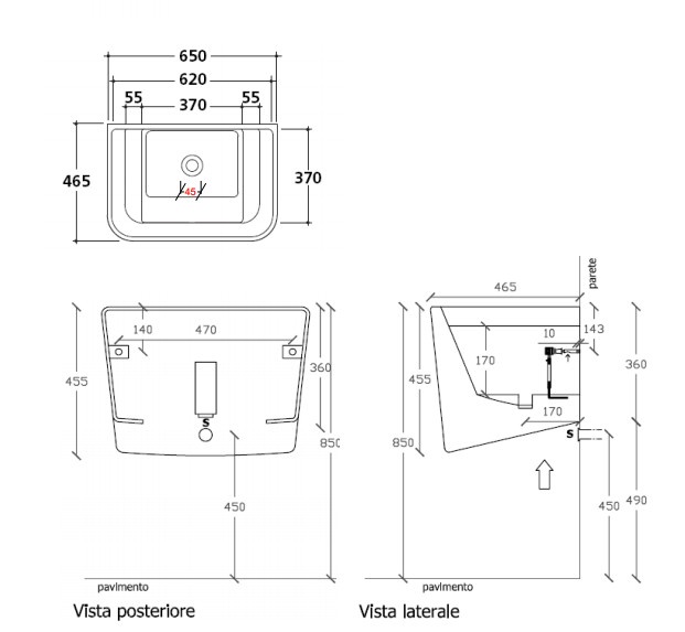 Galassia Meg 11 Umywalka ścienna 65x45 cm Biały 5403