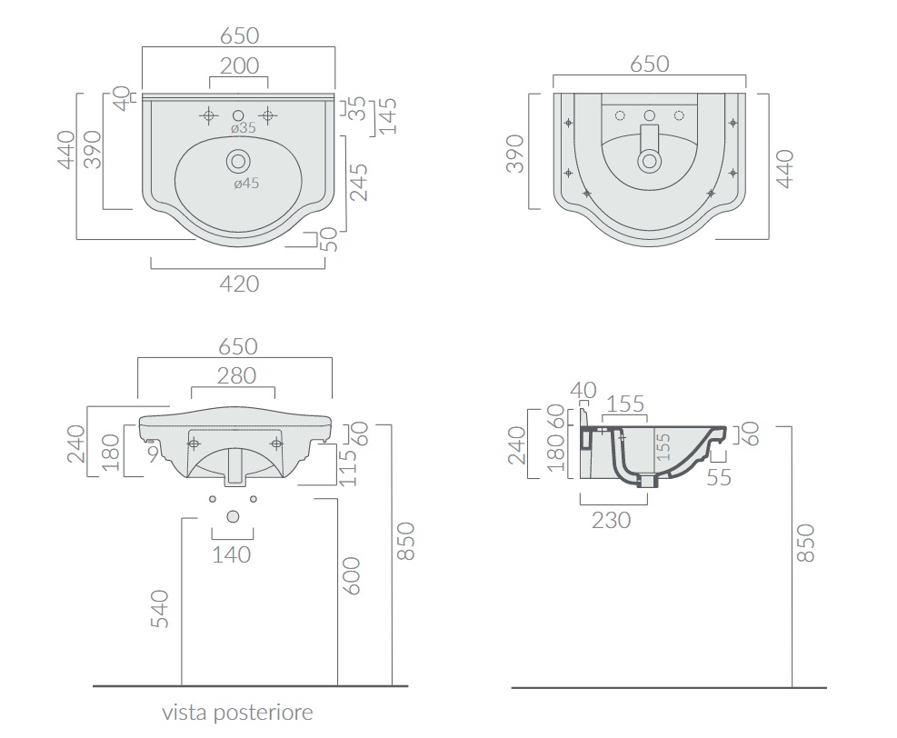 Galassia ETHOS Umywalka ścienna jednootworowa 65x44 cm Biały 8432M