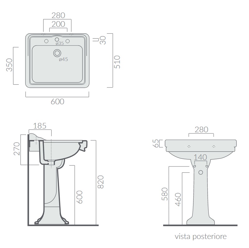 Galassia ETHOS Umywalka ścienna 3-otworowa 60x51cm Biały 8416