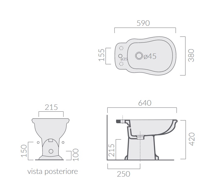 Galassia ETHOS Bidet stojący jednootworowy 59x38 cm Biały mat 8428M