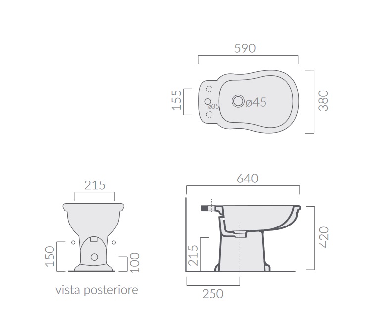 Galassia ETHOS Bidet stojący 3-otworowy 59x38 cm Biały 8428