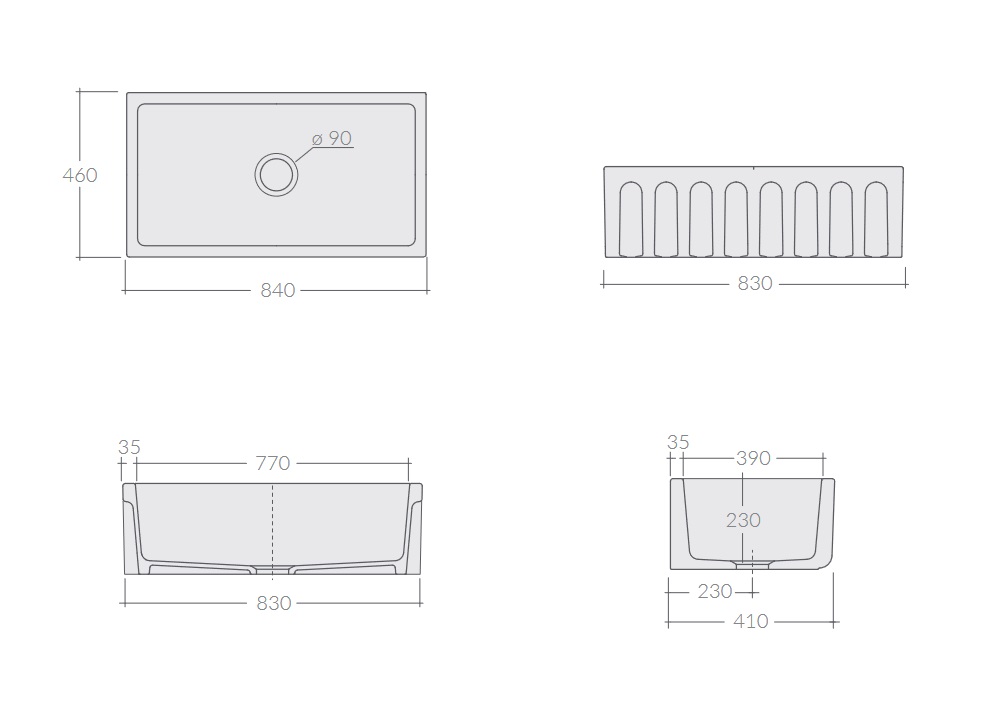 Galassia FRAME Zlew jednokomorowy 84x46 cm antracyt 5131NEMT
