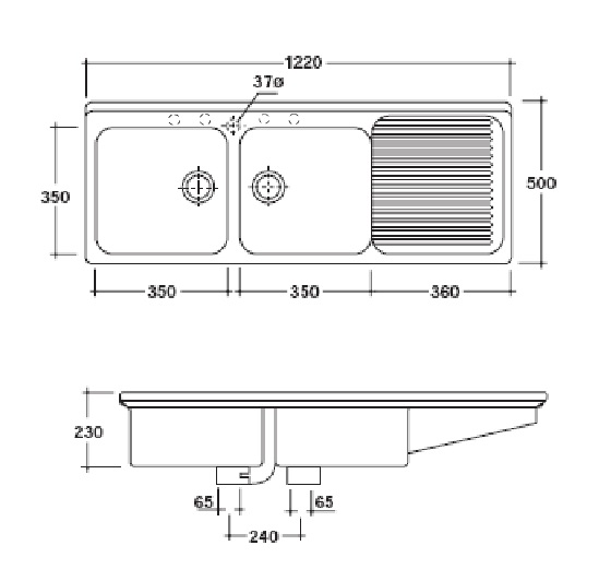 Galassia Florence Zlew dwukomorowy 122x50 cm z ociekaczem po lewej Biały 5005