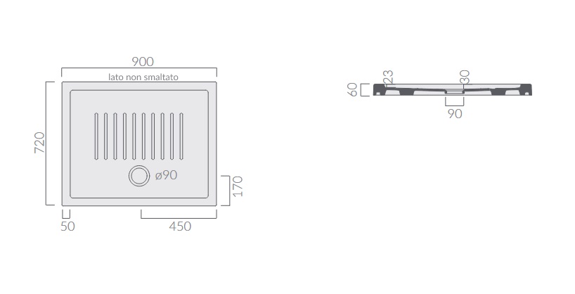 Galassia FLAT Brodzik prostokątny antypoślizgowy 90x72 cm Biały 1214