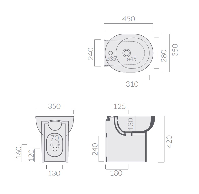 Galassia M2 Bidet stojący 45x35 cm Biały 5213