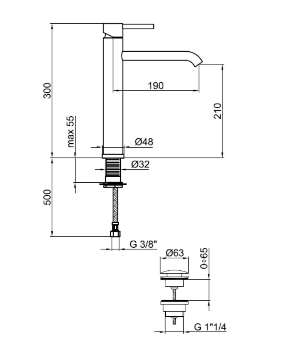 Galassia Bateria umywalkowa z korkiem Chrom 5443