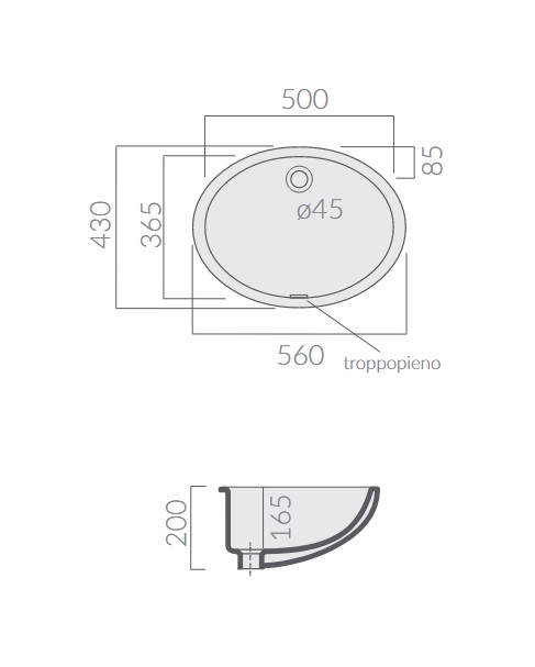 Galassia DENISE Umywalka podblatowa 56x43 cm Biały 6002